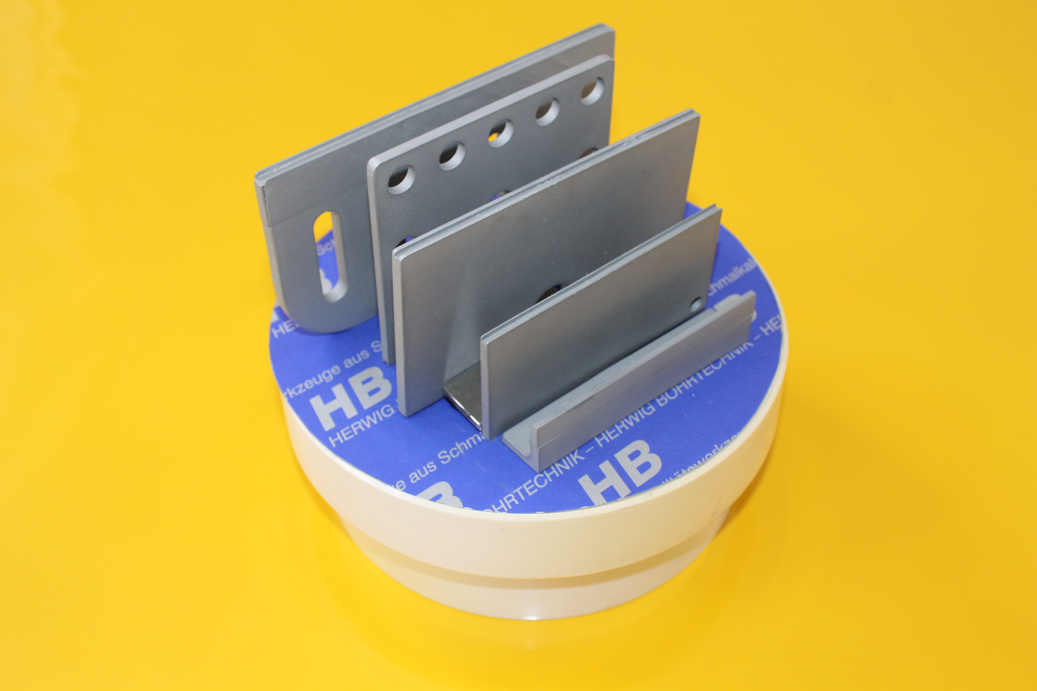 Die Hartmetallabstreifer bestehen aus Stahlblech und einer eingesetzten Hartmetallleiste. Das Hartmetall wird bei 1.140 °C im Schutzgasofen mit Hochtemperaturlot eingelötet. Das Problem besteht darin, dass die Leisten nach der Bearbeitung gerade und maßhaltig sein müssen. Mit unserer Technologie gewährleisten wir diese Anforderungen. Je nach Einsatz werden die Teile oberflächenveredelt.